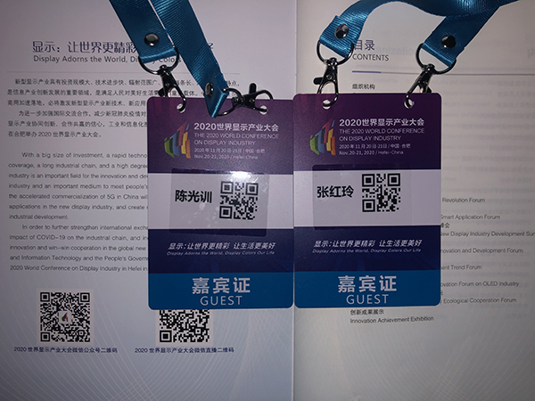 新型显示产业具有投资规模大、技术进步快、辐射范围广、产业链条长、集聚度高等特点。是信息产业创新发展的重要领域,是满足人民对美好生活需要的重要载体。今年,中国5G商用加速落地,必将激发新型显示产业新技术、新应用,形成产业发展新活力、新动能。为进一步加强国际交流合作,减少新冠肺炎疫情对产业链的冲击和影响,增强全球新型显示产业协同创新、合作共赢的信心,工业和信息化部、安徽省人民政府于2020年11月在合肥举办2020世界显示产业大会。安徽迅博智能公司总经理陈光训先生及张红玲女士参加了本次2020世界现实产业大会.